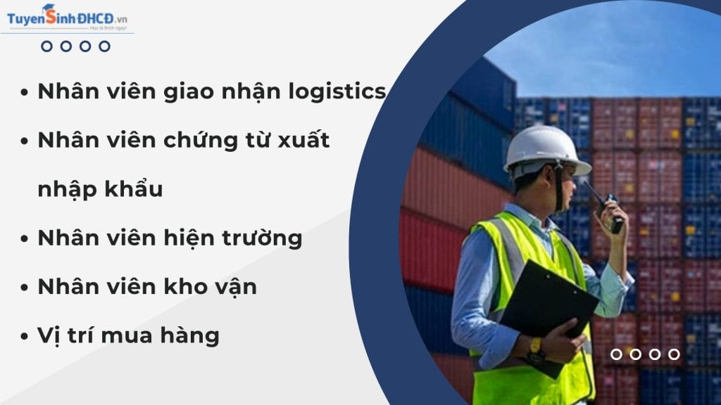 • Nhân viên giao nhận logistics: Giao nhận hàng hóa trong các doanh nghiệp logistics, sản xuất, thương mại