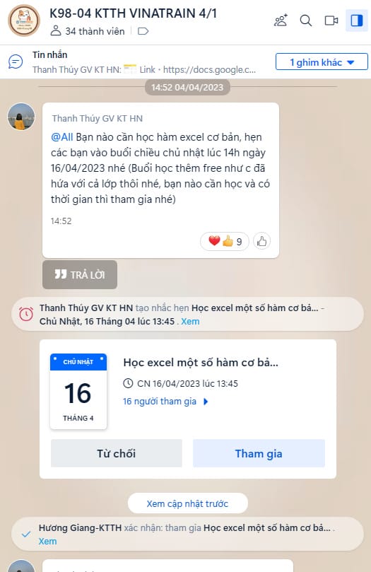 bạn cũng học ở vinatrian á,gặp đc đồng chí học cùng lớp nè, cũng học cô Thúy nữa, mình ở sg ko qua trung tâm học đc, học onl cô giáo dạy hay, có dạy free thêm excel nghiệp vụ nữa 😎